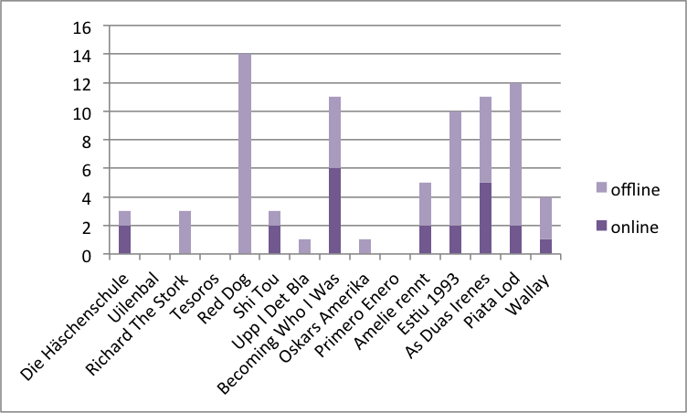 Auffällig bei dieser Umfrage ist vor allem der starke Unterschied in der Abstimmung bei Red Dog zwischen Online- und Offline-Publikum. Ich wage zu vermuten, dass es tatsächlich einige gibt, die gerne in erster Linie die „großen“ Veranstaltungen der Berlinale Generation mitnehmen: Eröffnung und Preisverleihung. Und diese dann auch am meisten wertschätzen.